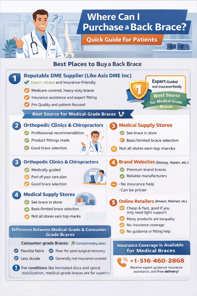 As a chiropractor and medicare-approved dme supplier supplier, one of the questions I hear almost daily is: “Where can I purchase a back brace?” Whether it’s a patient recovering from spinal surgery, someone dealing with chronic lower back pain, or an individual injured at work, the question usually comes from the same place — confusion about which brace to buy, where to buy it, and which one will actually help.